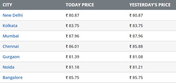 Petrol price in metros across India: