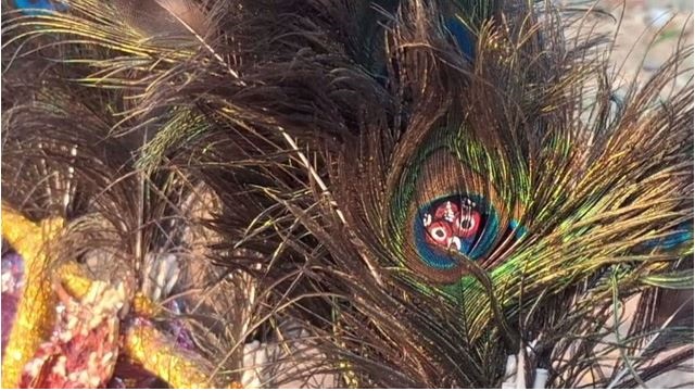 Rairakhol: Lord Jagannath reportedly manifested on a peacock feather during Danda Yatra in Sambalpur district of Odisha recently. While the priest saw the divine happening first, later many others also witnessed Lord Jagannath on the peacock feather. The rare incident was witnessed in the Kaitha Sahi of Rairakhol town in Sambalpur district of Odisha.