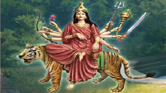 Maa Chandraghanta has ten hands. She holds different weapons in her hands. The Goddess regulates the ‘Manipur Chakra’. Astrologically, it is associated with Mars. So the third form of mother Goddess is done on the third day.