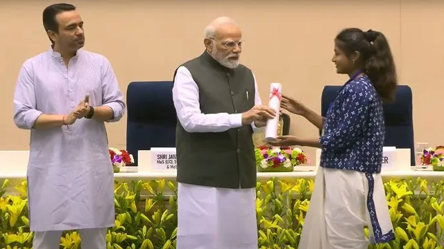 Prime Minister Modi honored 46 ITI toppers at the Kaushal Deekshant Samaroh, part of the National Skill Convocation.