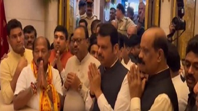 Mumbai: Maharashtra Chief Minister designate Devendra Fadnavis on Thursday offered prayers at Shree Siddhivinayak Temple in Mumbai, ahead of his swearing-in ceremony. Devendra Fadnavis also arrived at Shree Mumbadevi Temple in Mumbai and sought blessing at the temple.