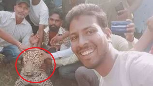 In the viral video, the leopard is seen surrounded by over a dozen persons and one of them was seen sitting on leopard’s back. The villagers were seen playing with the animal and taking selfies.