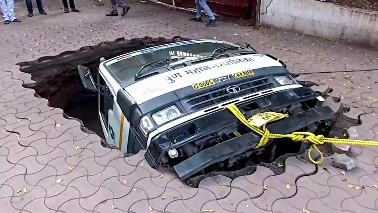 Nilesh Mahajan, Fire Department PRO said, “we got the news about a truck falling into the pit around 4-4.15 pm today. we were informed that a truck was there for the drainage cleaning work and suddenly fell into the pit. we found out that the truck belongs to the Pune municipal corporation. The pit might be of 40-50 ft deep. Several two-wheelers also fell into the sinkhole, along with the truck. We immediately alerted our team and called the JCB machines and cranes to pull the truck out. The driver successfully managed to jump out from the truck. Fortunately no injuries have reported till now.”