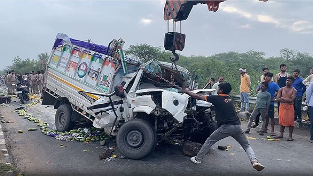 According to officials, the incident occurred when a pickup vehicle carrying mangoes lost control and fell off the flyover, crushing three morning walkers sitting beneath the structure, who died on the spot.