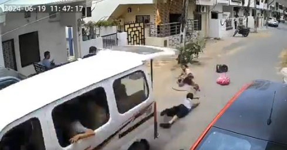 Vadodara: In a shocking incident, two minor girl students fell out of a moving school van in Manjalpur of Gujarat’s Vadodara. The driver of the van has been arrested following the incident. The incident has been captured in CCTV.