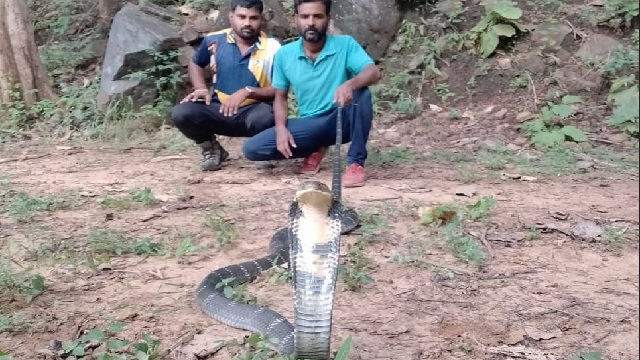 The snake catchers then rescued the snake from within a wood log. Upon observation it was seen that it was a King Cobra snake and length of the reptile was about 12 feet.