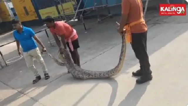Athagarh: A huge python has been rescued in Athagarh area of Cuttack district in Odisha on Tuesday. The mammoth reptile was rescued near the main gate of the J K Laxmi Cement Factory under Khuntuni police station limits in Athagarh area.