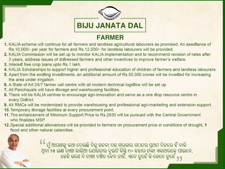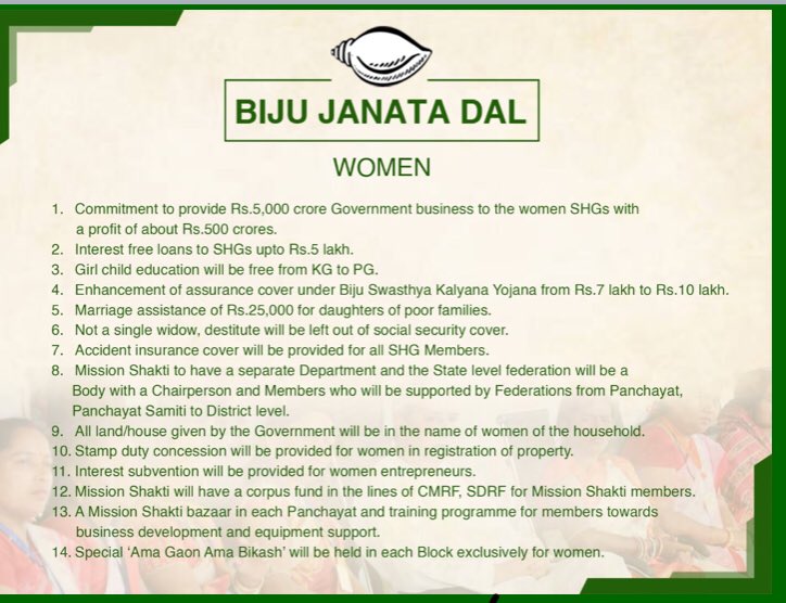 The conch party in its poll manifesto, apart from reiterating it’s long-standing demand of the Special Category Status for Odisha, has given focus on women, youth and farmers.