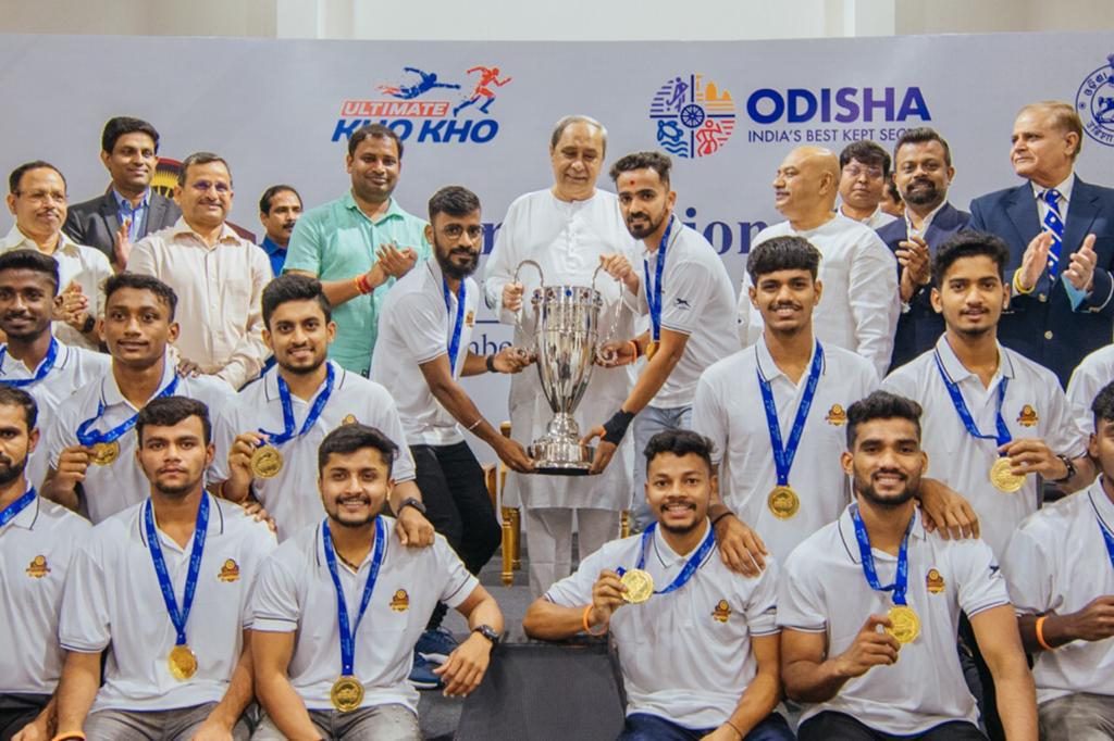Bhubaneswar: Chief Minister Naveen Patnaik today felicitated the Odisha Juggernauts for emerging champions at the inaugural edition of the Ultimate Kho Kho League and scripting history. He presented a total cash award of Rs 2 crores to the team at a felicitation ceremony organised at Kalinga Stadium in Bhubaneswar.