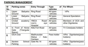 - Odisha Cricket Academy (OCA) Ground pass-holder vehicles shall proceed towards YMCA Crossing or Lions Eye Hospital, and thereafter park at OCA Cricket Academy Ground.