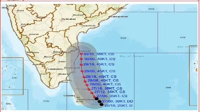 It further said that the system will move NNW and reach off North Tamil Nadu–Puducherry–south Andhra Pradesh coasts by early hours of November 30.