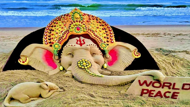 The sand artist wrote the message of World peace on Ganesh Chaturthi. See the tweet here: