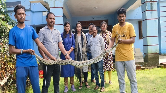 The snake was released in the nearby forest after a health check by the forest department. The weight of the snake is said to be between 10 to 12 kg and its length was 9 feet.