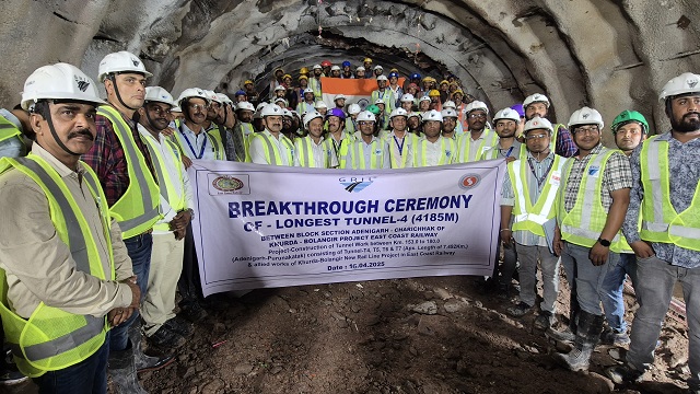 Boudh: The Khurda Road-Balangir new rail line project achieved a major milestone today as the breakthrough ceremony of Odisha’s longest tunnel, 4185 meter Adenigarh-Charichhak tunnel, was held.