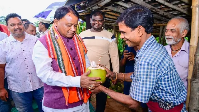 As per information, chief minister Mohan Charan Majhi was proceeding to Puri today to attend an event and to have darshan of Lord Jagannath. However, he stopped at a roadside tender coconut kiosk near Satyabadi along with all the people who were accompanying him. He then asked the vendor to give tender coconut water and quenched his thirst. He also paid money for the tender coconut.