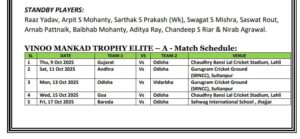 Odisha U19 Men’s Team announced for Vinoo Mankad Trophy