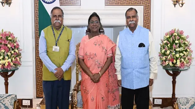 New Delhi: Prof Kishor Basa, the Chairman of National Monuments Authority of government of India and his twin Brother Er Ashok Basa, the Chair of Strategic Planning Committee World Federation of Engineering Organizations (WFO), former Executive Vice President (WFEO) and former President, Institution of Engineers (India) met President Droupadi Murmu this afternoon.