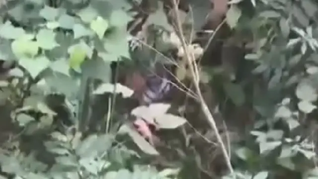 In a dramatic video, a man has allegedly climbed up a tree for hours in the jungle, with an overturned motorcycle on the ground below. The video has gone viral.