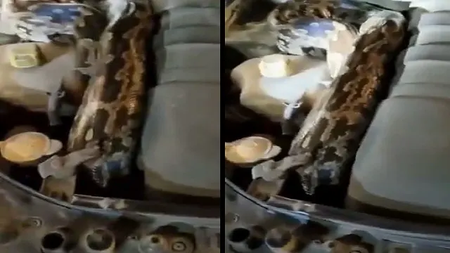 Massive 9-foot python found in car bonnet, viral video sparks wide spread panic