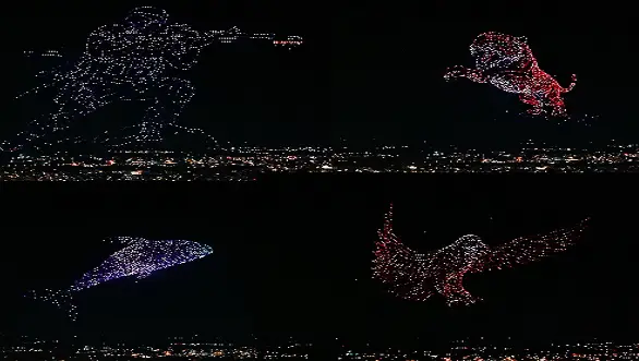Nearly 3,000 drones flew together in the night sky to create a giant tiger, breaking the Guinness World Record for the “largest aerial image of a mammal.”