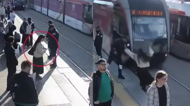 In a brave act, a security guard saved a woman from being hit by an oncoming tram in Kayseri, Turkey. The CCTV footage of the incident has gone viral on social media.
