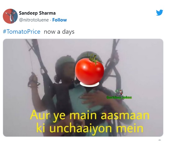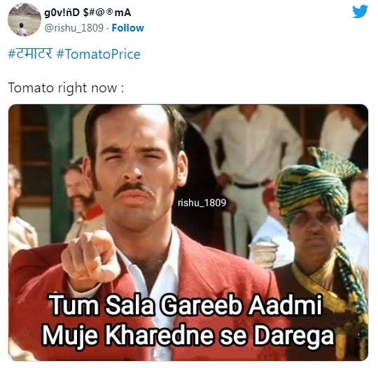 A Twitter user named Chipmunk shared a picture of Nana Patekar from the movie Welcome and wrote in the caption, “#TomatoPrice are rising. All vegetables sellers now.”