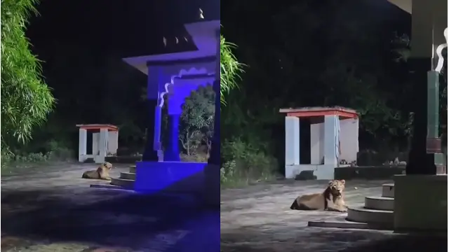 The clips shows the lioness sitting calmly outside the temple like its guarding the temple. The viral clip has already gathered more than 55,000 views and continues to attract attention.