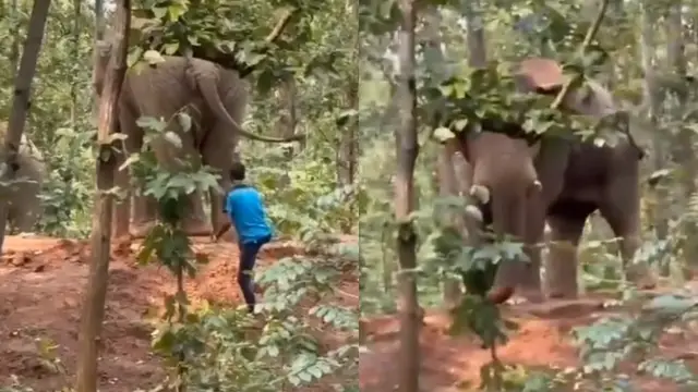 In a disturbing incident, a video showing a man harassing a wild elephant by pulling its tail has gone viral on social media. The footage has sparked widespread outrage online with many calling for strict action against those involved.