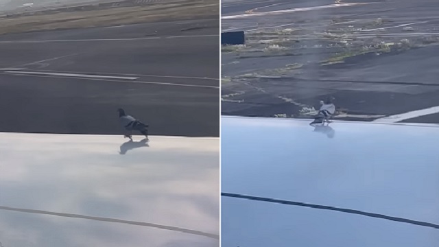Watch: Pigeon calmly sitting on airplane wing hilariously slips during take off