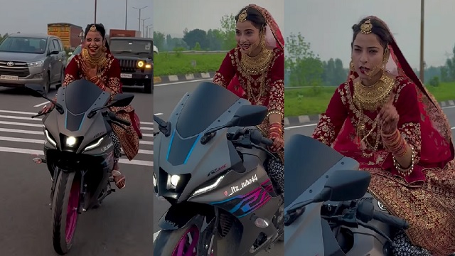 Posted on Instagram by user @__itz_tuba44, the video showcases a woman, whose identity as the bride is yet to be verified, skillfully riding through a busy highway in her elaborate bridal attire.