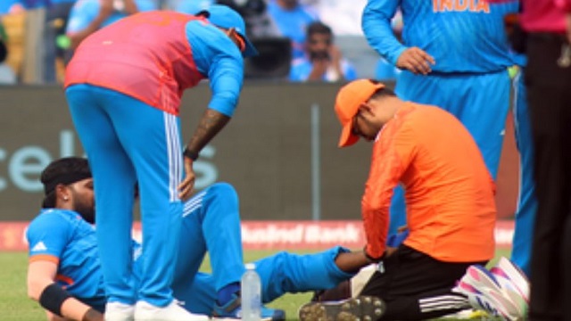 Pune: India’s hopes for an early breakthrough against Bangladesh in their ICC Men’s Cricket World Cup match did not materialise on Thursday and to compound their problems, all-rounder Hardik Pandya limped off the ground in the ninth over after twisting his ankle in his follow-through to a delivery.