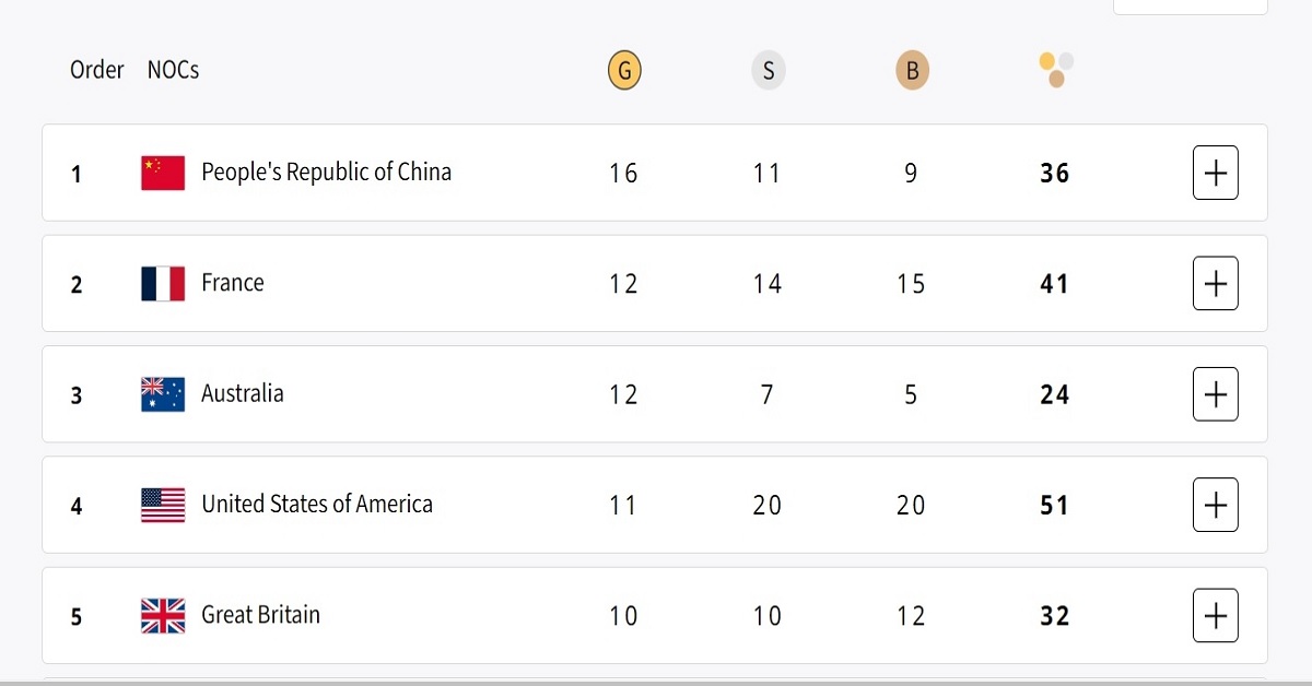 Paris: With Chen Meng claiming the gold medal in women’s singles table tennis, China maintained their hold on the No.1 spot in the medals tally extending their total to 36 medals including 16 gold in the 33rd Olympic Games in Paris on Saturday. Besides 16 gold medals, China have won 11 silver and nine bronze medals