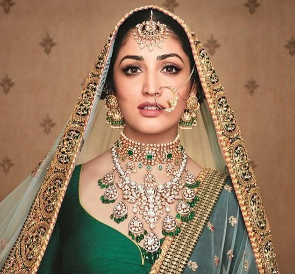 Yami Gautam If you want to look stunning and turn heads, take inspiration from Yami Gautam. She wore a beautiful, green, embroidered traditional outfit, which can be styled with heavy jewellery and bold eye makeup.