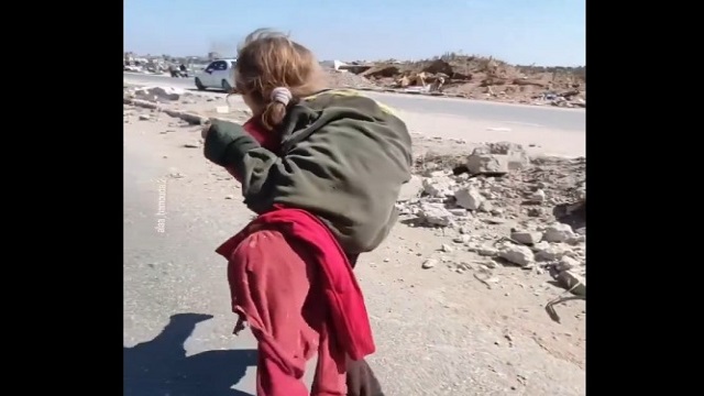 The video has been shared on X platform by WearthePeace, with a caption, ” A Palestinian little girl was found walking and carrying her little sister to take her to the hospital for treatment. End the genocide. End the occupation.